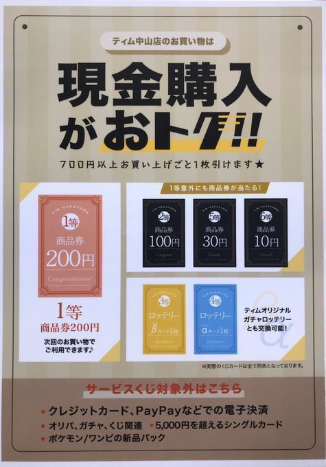 現金購入でサービスくじ!!